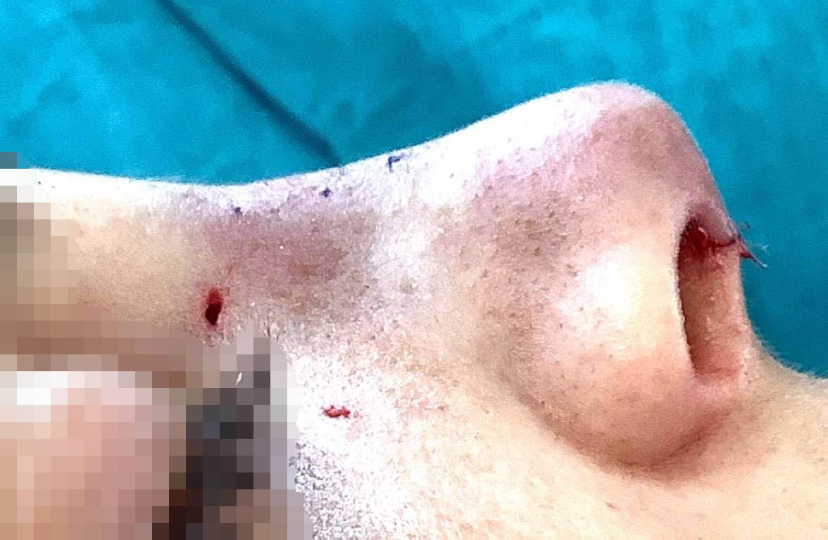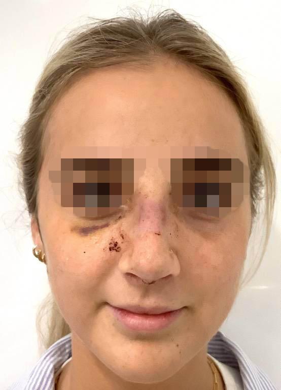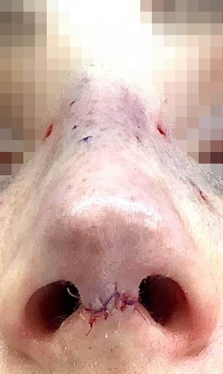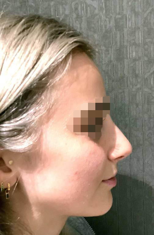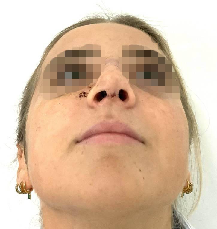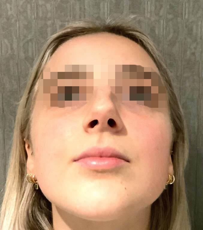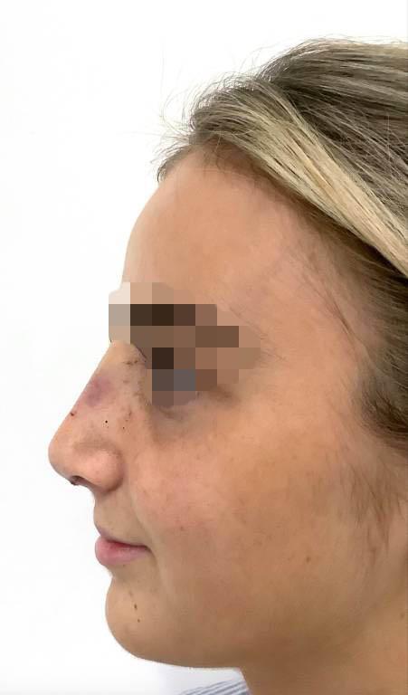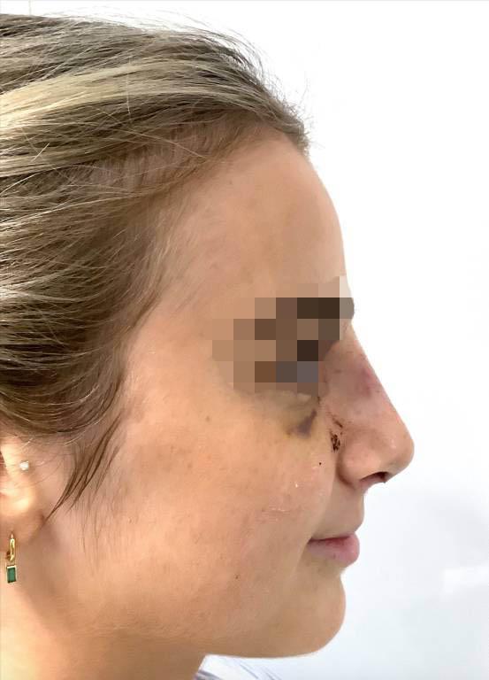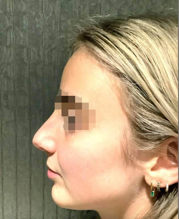 JBT had had previous septoplasty surgery and was keen on cosmetic rhinoplasty to correct a broad and irregular nasal dorsal, and refinement to the nasal tip. In addition to the above surgery, she also required a small cartilage spreader graft to support the left middle third due to weakness, which was fashioned to cause the least possible effect on widening this part of the nose.
